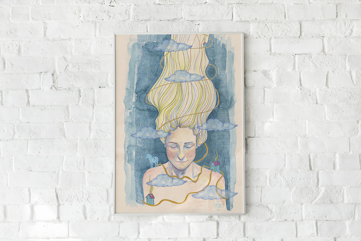 Lamina decorativa impresa en papel verjurado 300gr, tamaño A5. Ilustración “Mis pertenencias” Diseñada por Adhara Freile